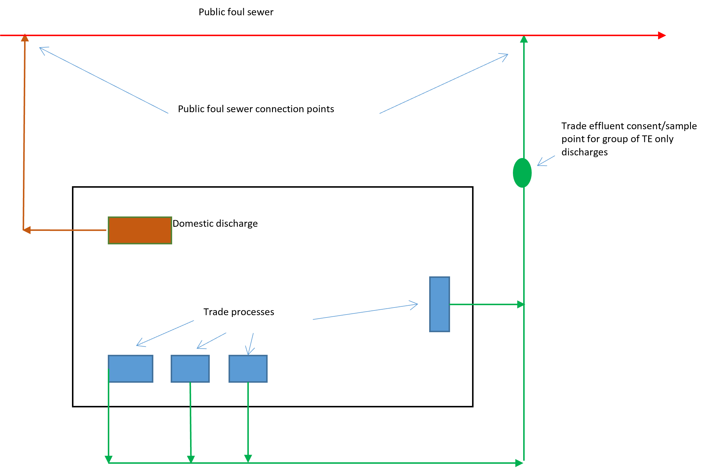 • The TE discharge route to the public foul sewer, including any private pipelines or sewers.